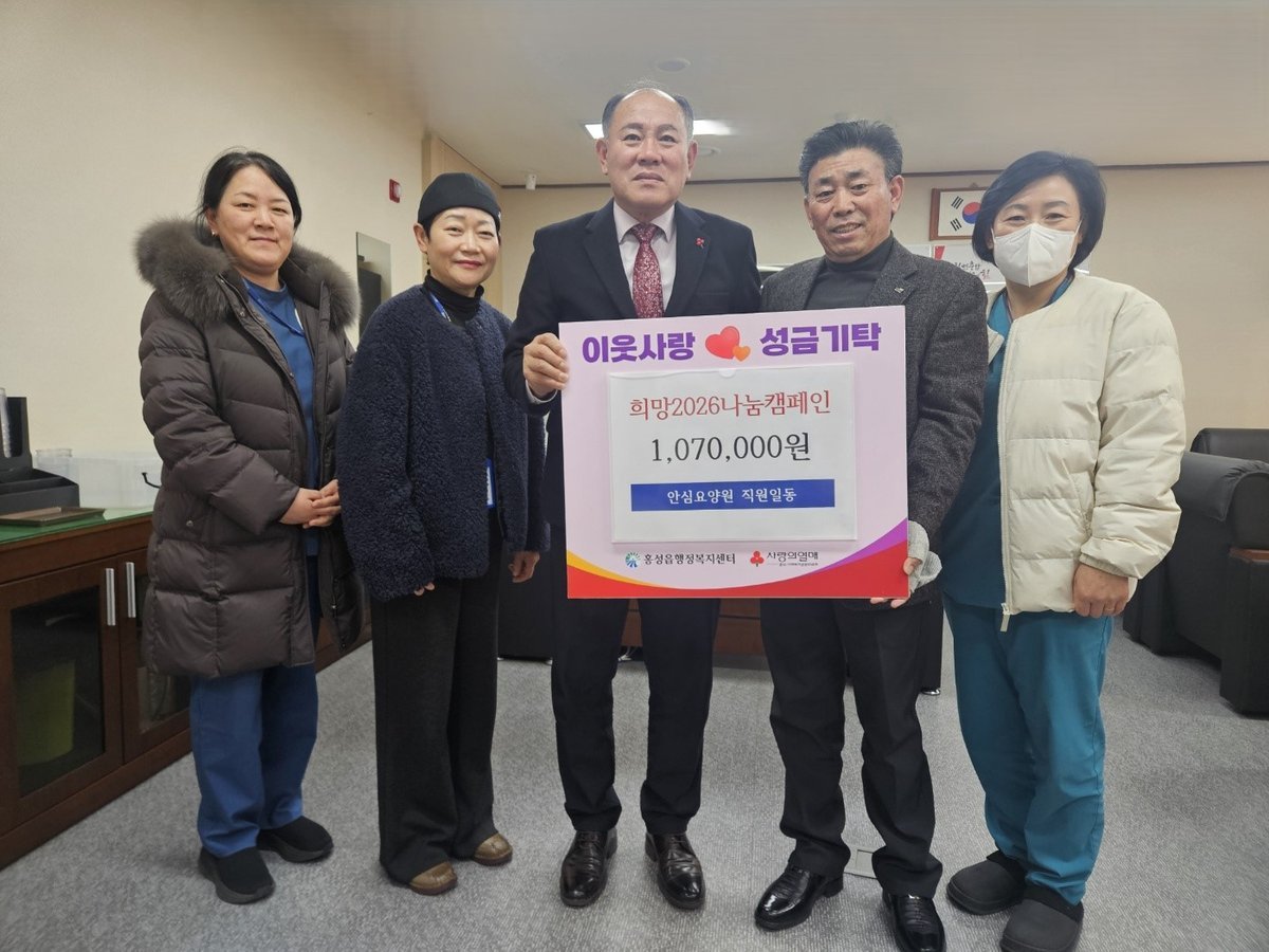 김영만 원장은 “직원들의 작은 정성이 모여 지역사회에 따뜻한 온기를 전할 수 있어 뜻깊게 생각한다”며, “앞으로도 홍성안심요양원은 지역사회와 함께하는 복지기관으로서 나눔과 상생의 가치를 꾸준히 실천해 나가겠다”고 말했다.
