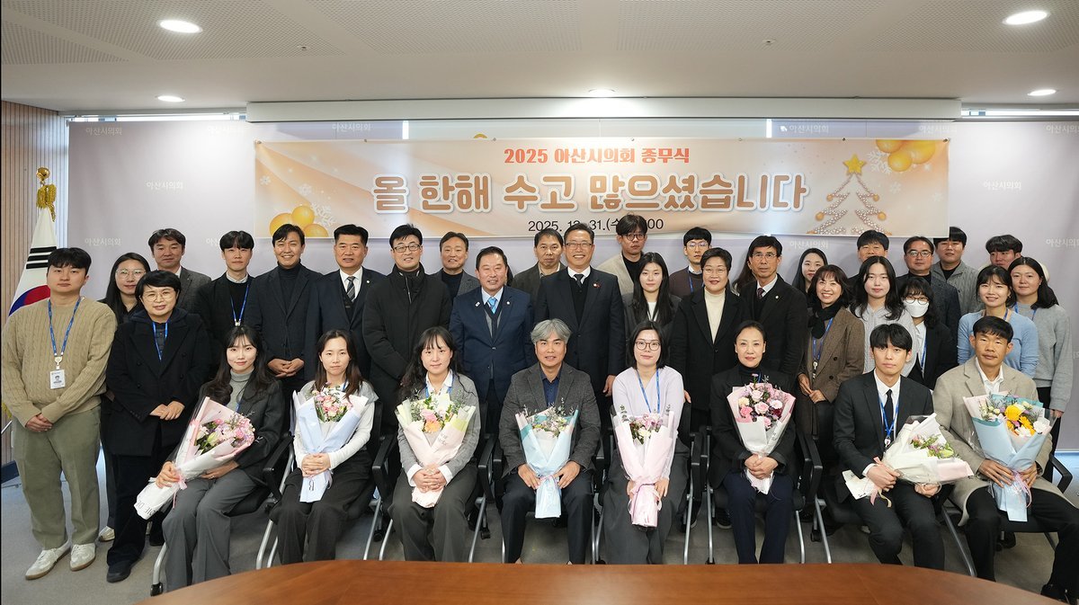 [충청중심뉴스] 아산시의회는 12월 31일 오전 11시 의회동 3층 다목적회의실에서 시의원과 의회사무국 직원들이 참석한 가운데 2025년도 종무식을 개최하고 한 해 의정활동을 마무리했다.