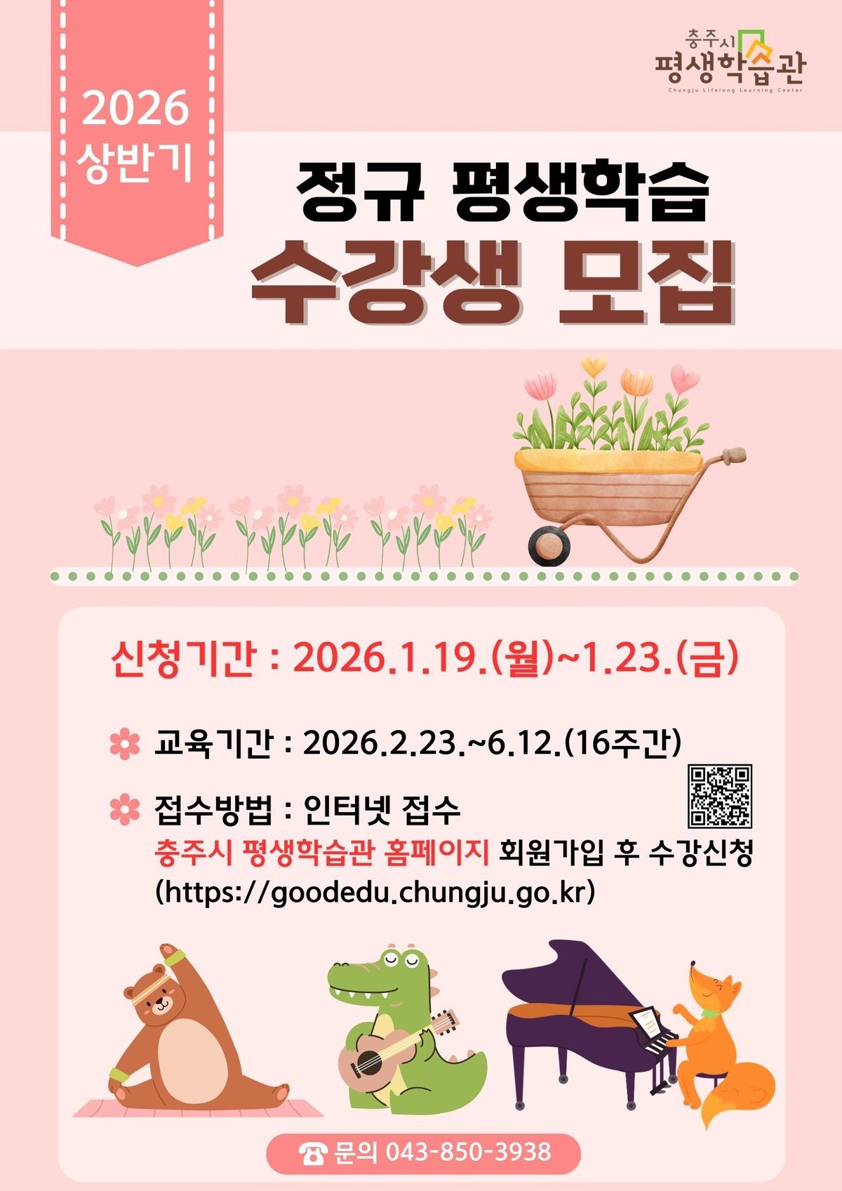[충청중심뉴스] 충주시 평생학습관에서는 시민들의 평생학습 참여 확대를 위해 2026년 상반기 정규 평생학습 프로그램 수강생을 모집한다고 5일 밝혔다.
