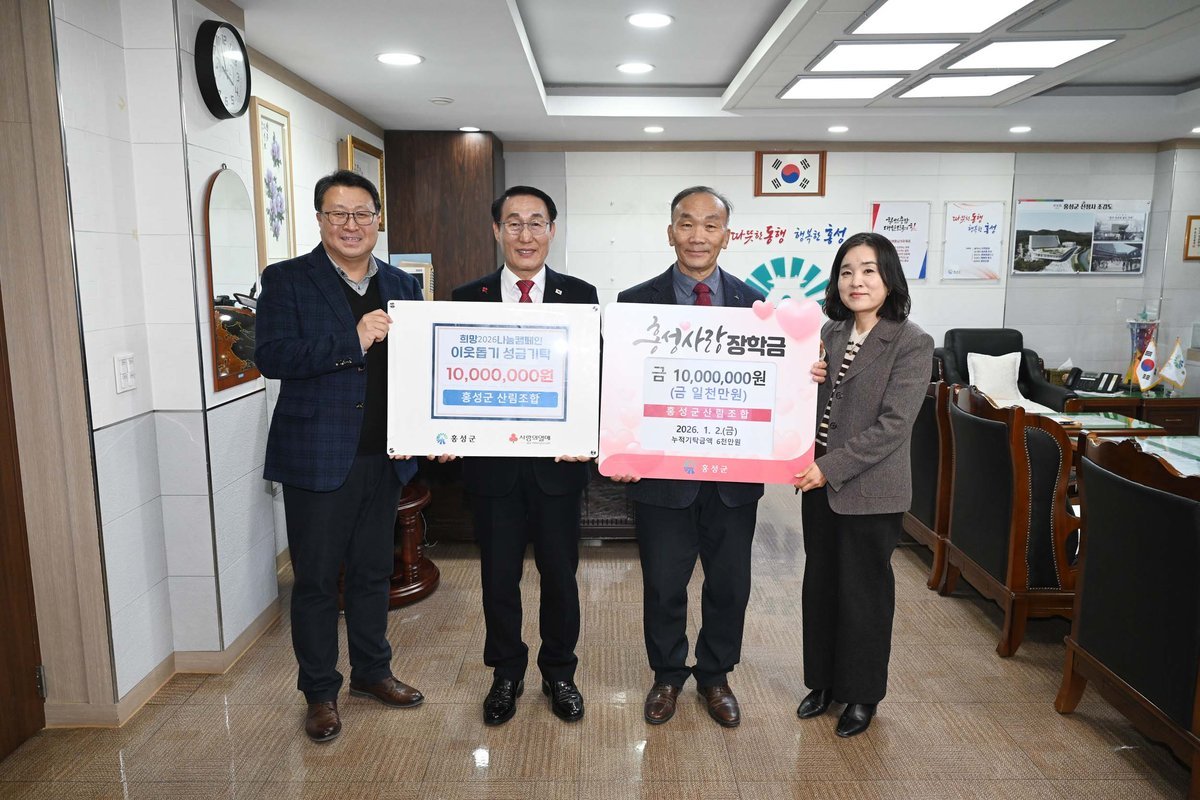 [충청중심뉴스] 홍성군은 지난 2일 홍성군 산림조합이 지역의 우수한 인재 육성과 어려운 이웃을 돕기 위한 따뜻한 마음을 담아 장학금과 이웃돕기 성금 각 1천만원씩, 총 2천만원을 홍성군에 기탁했다고 밝혔다.