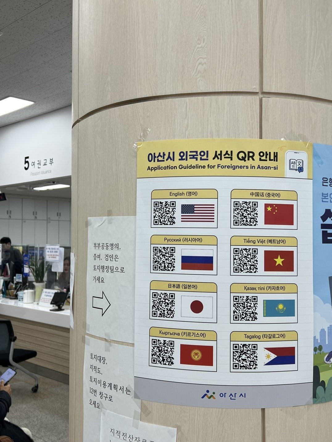 [충청중심뉴스] 아산시는 외국인 민원서식 QR코드를 제작해 외국인이 민원서식을 언제든지 쉽게 열람할 수 있도록 시스템을 마련하였다.
