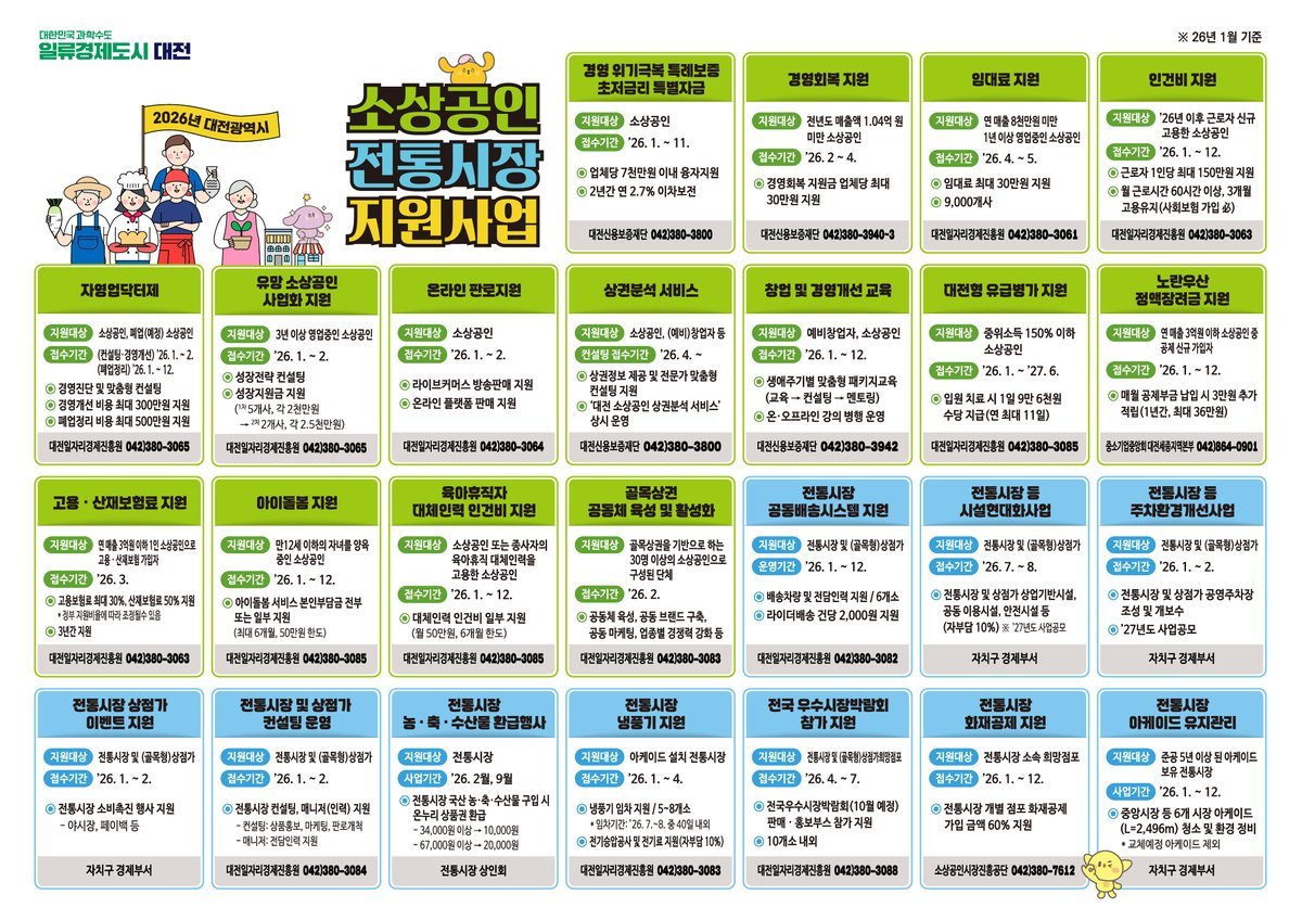 이장우 대전시장은 "올해 소상공인 지원사업은 신속한 지원, 신청 편의성, 현장 체감도를 핵심으로 추진하겠다"며 "신청 절차를 최대한 간소화해 소상공인이 장사에만 집중할 수 있는 환경을 만들고, 전통시장과 상점가에 활력이 돌도록 최선을 다하겠다"고 강조했다.